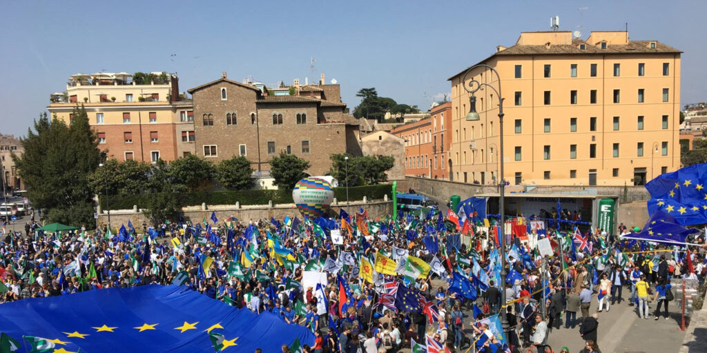 No dia em que assinalámos os 60 anos da assinatura do Tratado em Roma, em 27 de março de 1957, tive a oportunidade de participar nesta manifestação pró-europa, que terminou mesmo junto ao Coliseu de Roma.